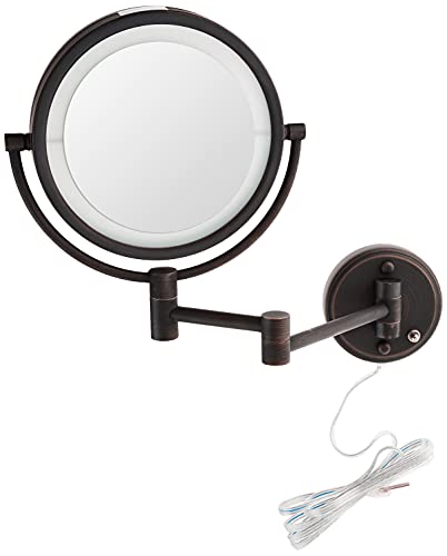 Jerdon 8X-1X Magnification LED Lighted Wall Mount Mirror, Bronze