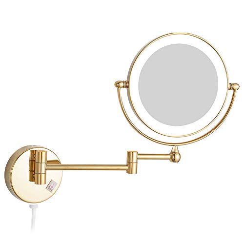 GURUN 8.5 Inch LED Lighted Wall Mount Makeup Mirror with 10x Magnification,Gold Finish